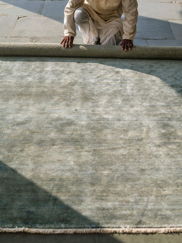 A tonal rug with subtle variations in texture and shade. The soft surface captures light differently across the pile, creating a quiet, layered effect that shifts throughout the day.