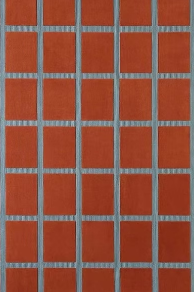 A structured grid of warm blocks set within a cool-toned framework. The contrast between color and line creates a strong visual rhythm, giving the rug a graphic yet balanced presence. Ideal for adding definition and depth to both neutral and layered interiors.