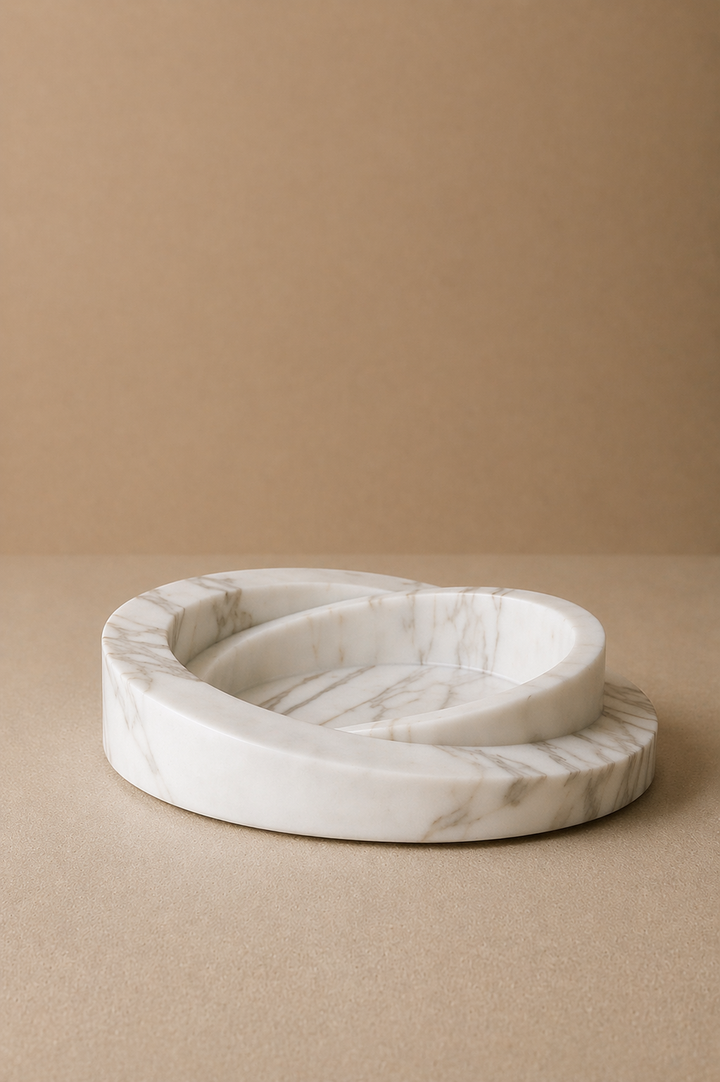Carved from solid marble, this tray features a recessed inner surface framed by a continuous raised edge. Designed for display or organizing everyday objects, it functions as both a practical piece and a subtle centrepiece.