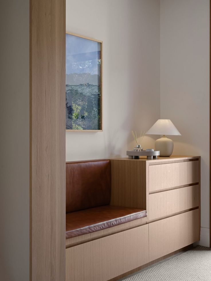 A compact entry unit combining storage, seating, and surface in a single continuous form. Designed to anchor transitional spaces, it offers a place to sit, store, and pause without visual clutter.